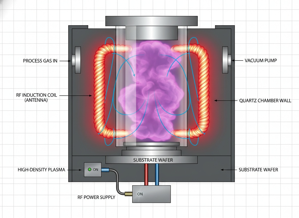ICP 방식은 외부 코일을 통해 에너지를 전달하는 간접 결합 구조를 가집니다. 코일에서 형성된 자기장은 반응 영역을 유지시키는 역할을 하며, 내부 구성 요소가 직접 노출되지 않는 것이 특징입니다. 이 구조는 공정 조건 변화에도 비교적 일정한 상태를 유지하기 쉬워, 정밀한 제어가 요구되는 환경에 적합합니다.